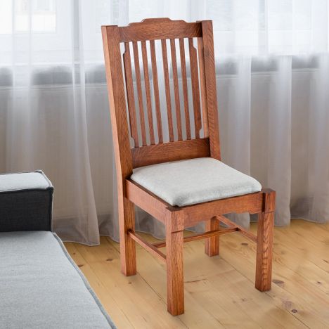 Introducing our exquisite Wood Mission Chair, a perfect blend of timeless elegance and sturdy craftsmanship. This chair is meticulously handcrafted from high-quality wood, ensuring durability and longevity. Its classic mission-style design features clean lines, a slatted backrest, and a comfortable, contoured seat, providing both style and comfort. The rich wood finish adds a touch of warmth and sophistication to any space, making it an ideal addition to your dining room, study, or living area. With its solid construction and attention to detail, our Wood Mission Chair is not only a beautiful piece of furniture but also a practical investment that will enhance your home decor for years to come.