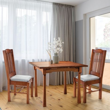 - Compact 4' square footprint fits seamlessly into small dining rooms